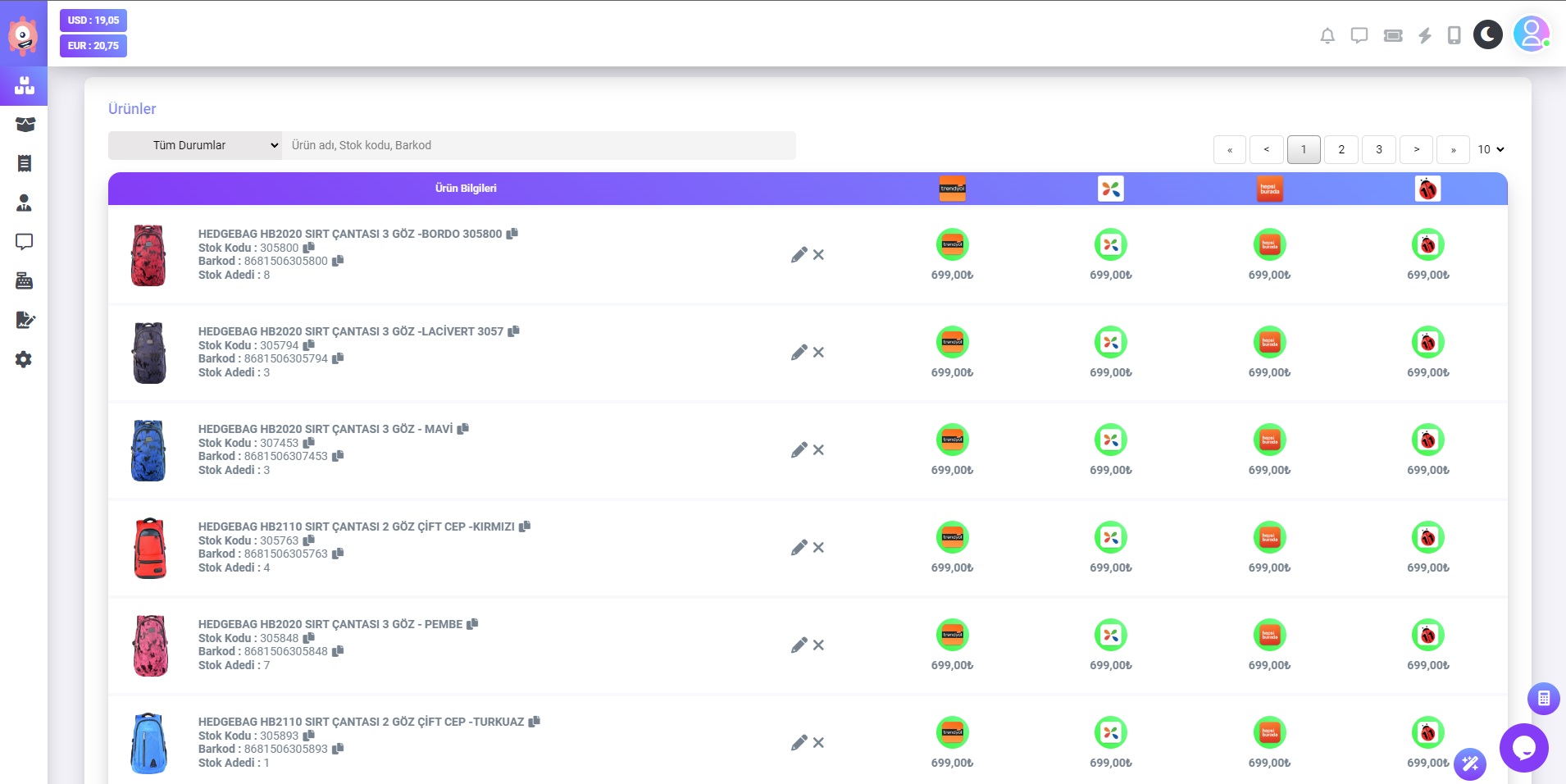 Ürünler sayfası Ürün Düzenle